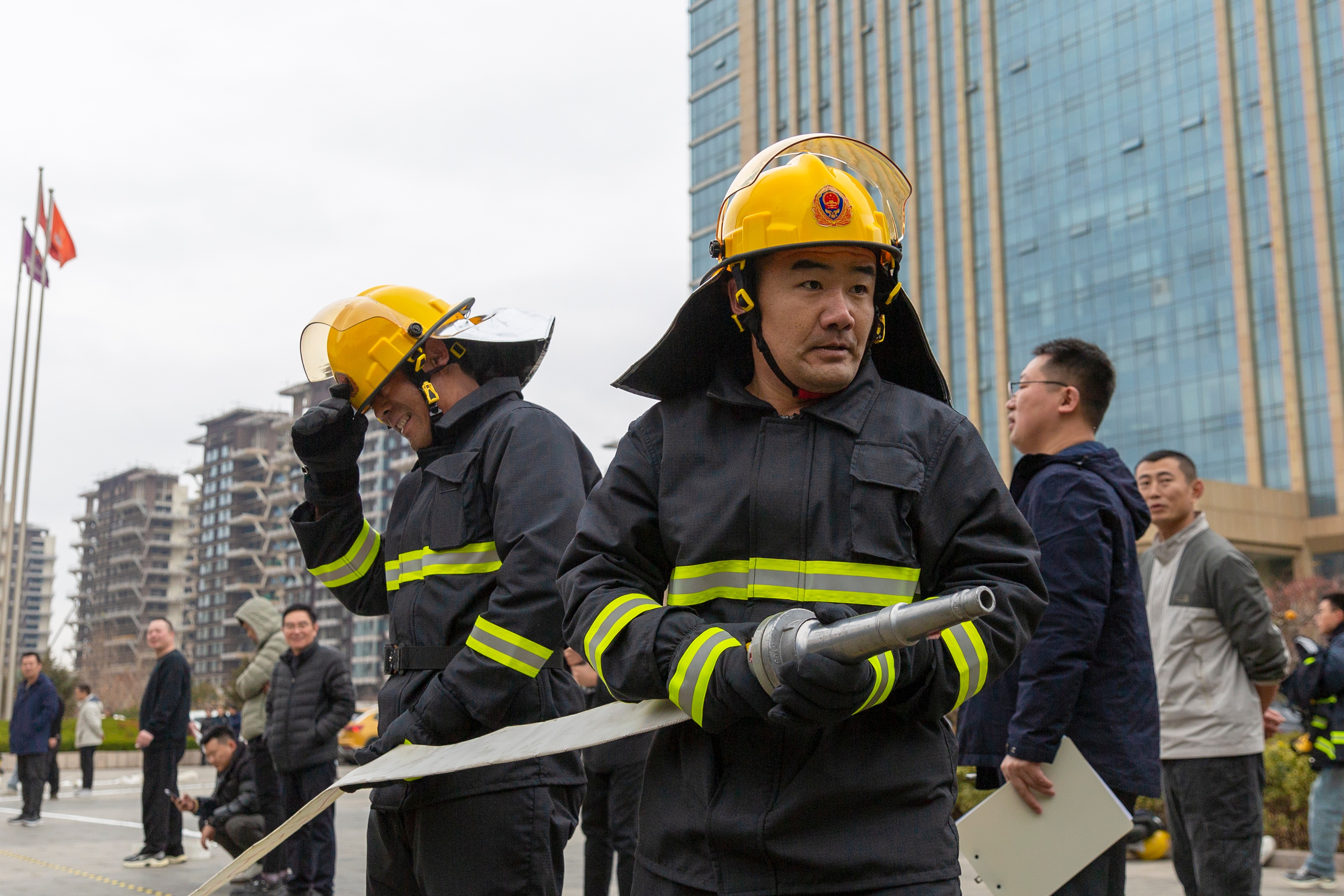 本次競賽聚焦實戰(zhàn)化技能比拼,設(shè)置消防防護裝備穿戴、滅火器快速轉(zhuǎn)運、水帶連接實操等關(guān)鍵考核環(huán)節(jié),全方位檢驗參賽隊員的應(yīng)急處置能力與協(xié)同作戰(zhàn)水平。競賽現(xiàn)場,隨著裁判一聲令下,交建集團參賽隊員反應(yīng)迅速、動作嫻熟。第一組隊員準確快速穿戴防護裝備,攜滅火器快速奔赴指定地點,舉手示意干脆利落;第二組隊員接力而上,水帶甩開、接口對接、水槍連接一氣呵成,整套動作規(guī)范流暢、銜接緊密。最終,團隊以全場最短總用時脫穎而出,將冠軍收入囊中。