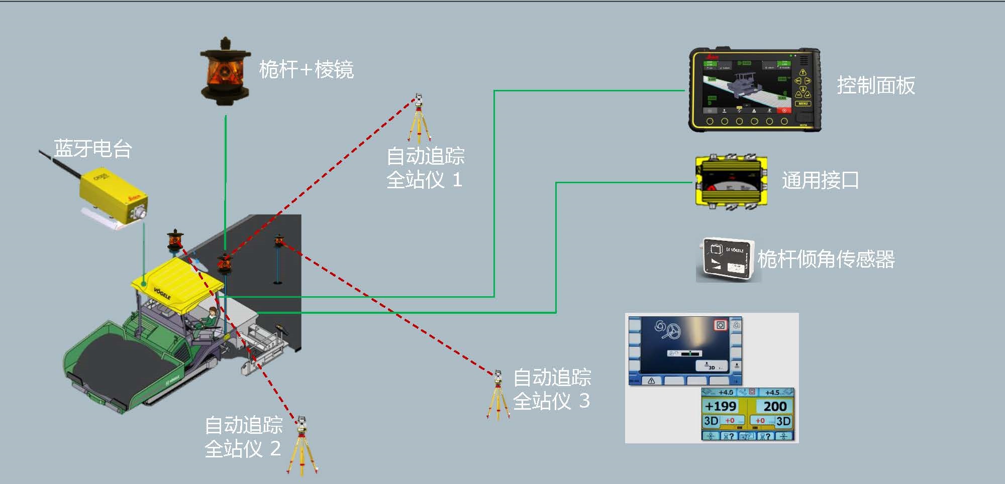3D智能攤鋪技術(shù)集成了衛(wèi)星定位、域激光、高精度傳感器、3D數(shù)字化模型等前沿科技,突破了傳統(tǒng)“放樣-打樁-掛線”施工模式,通過數(shù)字化測(cè)量與自動(dòng)化控制,構(gòu)建起“數(shù)據(jù)采集-指令生成-精準(zhǔn)攤鋪”的全閉環(huán)智能施工體系,大幅減少現(xiàn)場(chǎng)作業(yè)人員投入,有效縮短施工準(zhǔn)備周期,極大提升了施工效率與質(zhì)量管控水平。