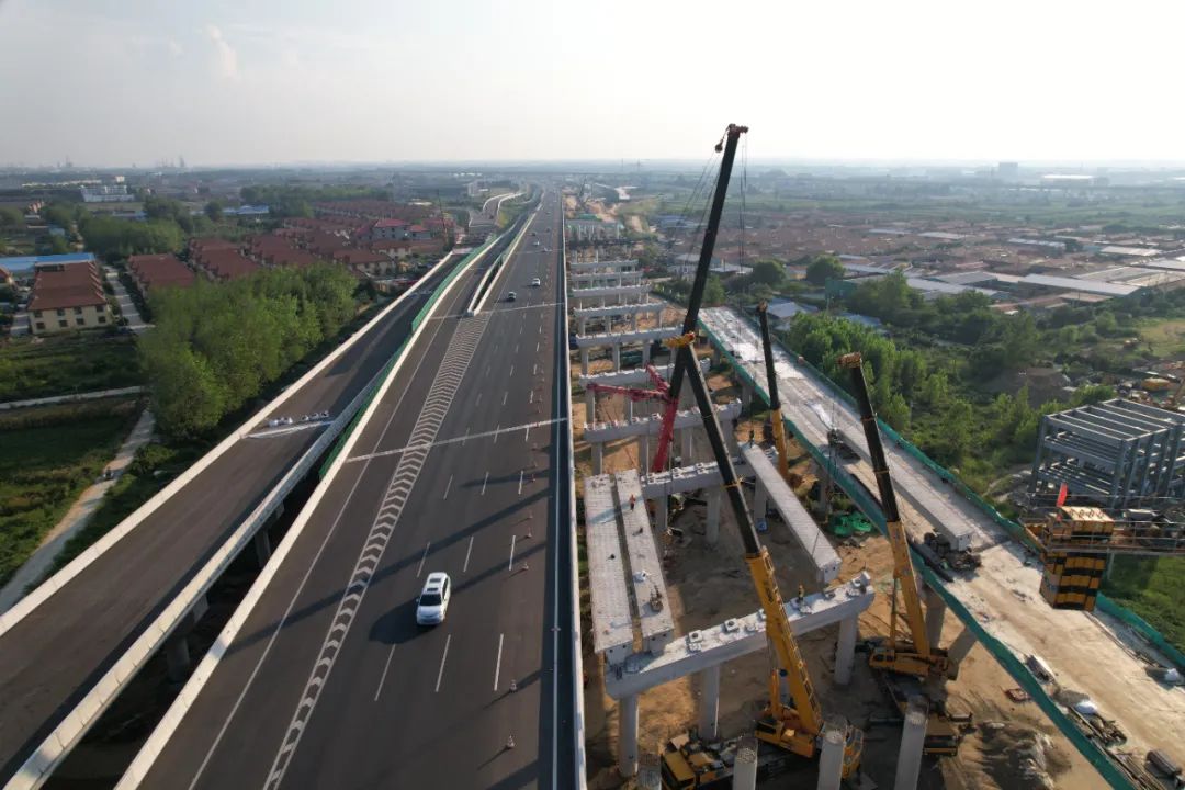 公鐵立交作為全線重點(diǎn)控制性工程,全長691米,緊鄰疏港高速匝道,與鐵路、村道、燃?xì)夤芫€多重交叉,大型設(shè)備移動(dòng)受限。公司從工藝工法、質(zhì)量控制、安全交底等方面入手,組織專家論證,優(yōu)化吊裝路徑,采取大噸位吊車協(xié)同“抬吊”施工方式,確保工程順利推進(jìn)。